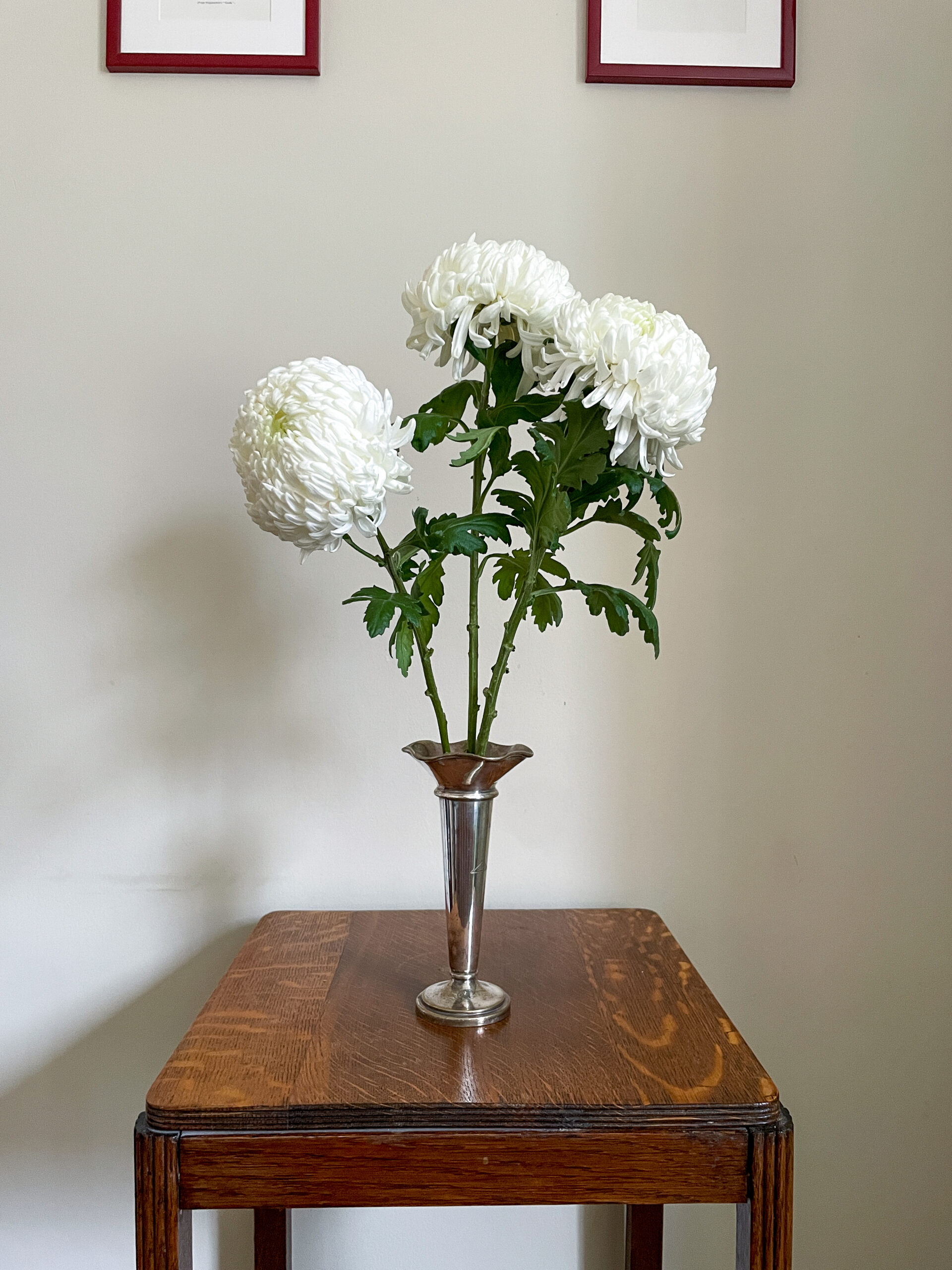 | 9 stems of a large headed, snowball like chrysanthemum grown in Cambridgeshire called American Beauty. Perfect for Christmas! Order with or without lametta to style with.