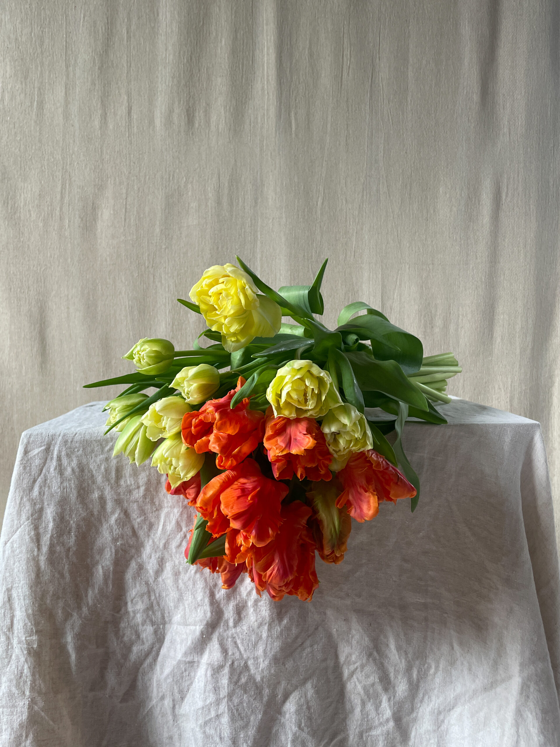20 stems of Lincolnshire tulips. A pick of our favourite varieties available in any given week – a mixture of double and/or special tulips such as parrots plus lovely single petalled varieties. Please read the below before ordering: