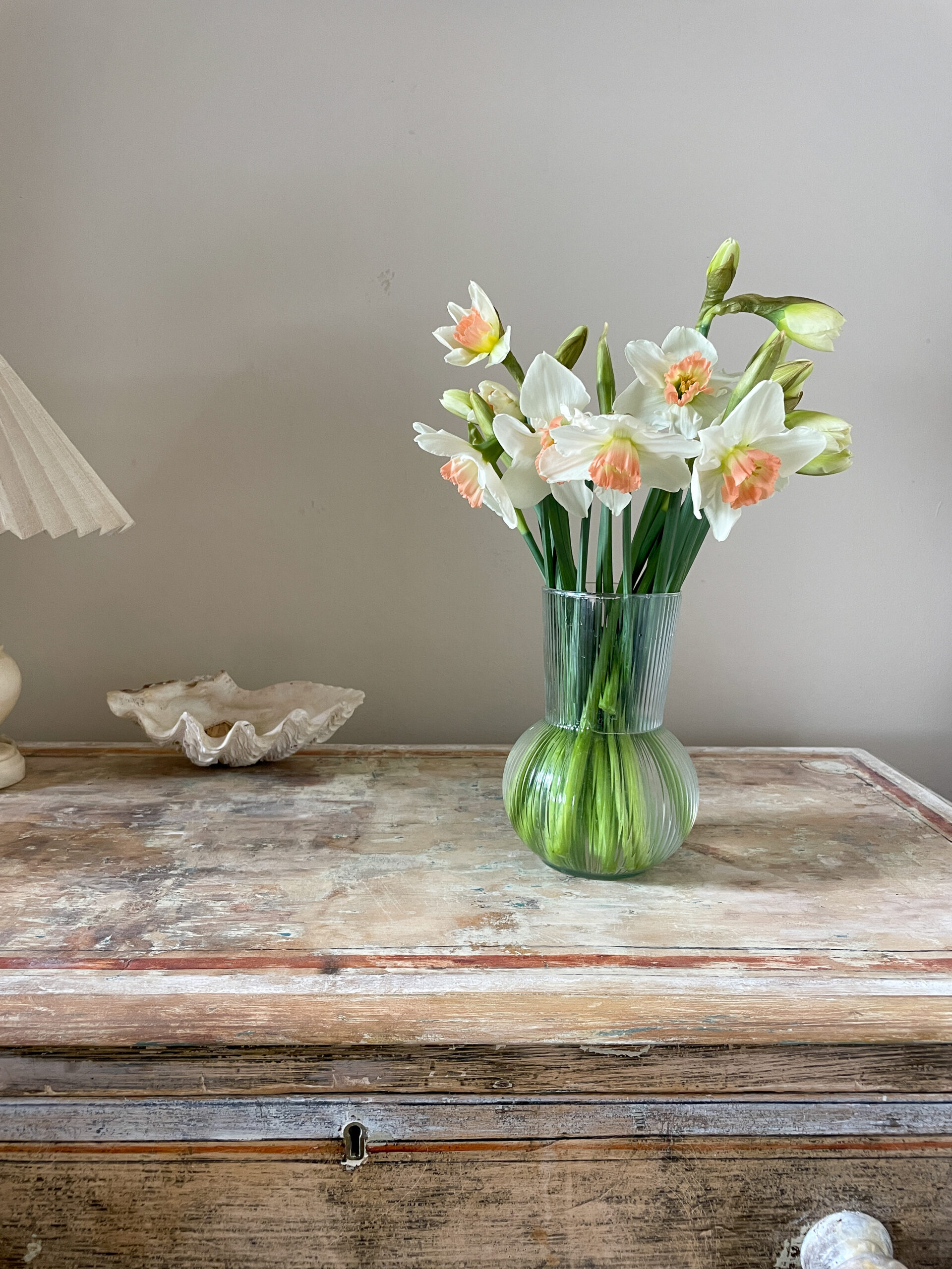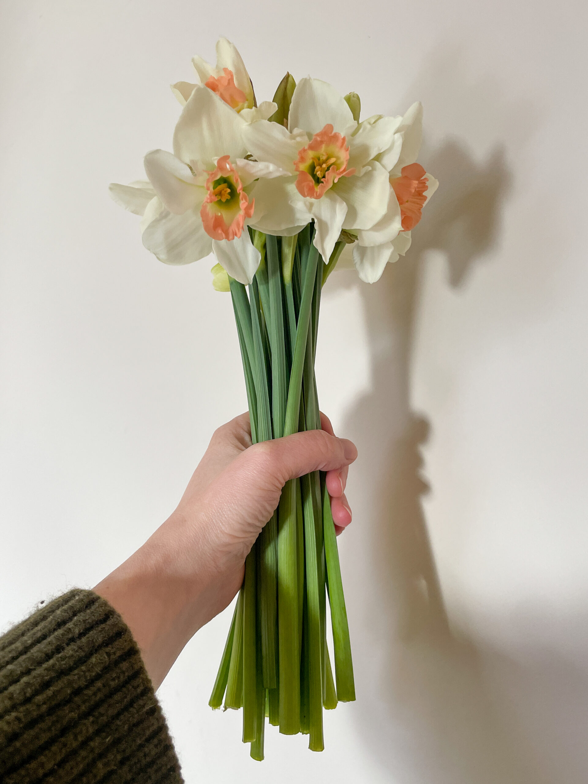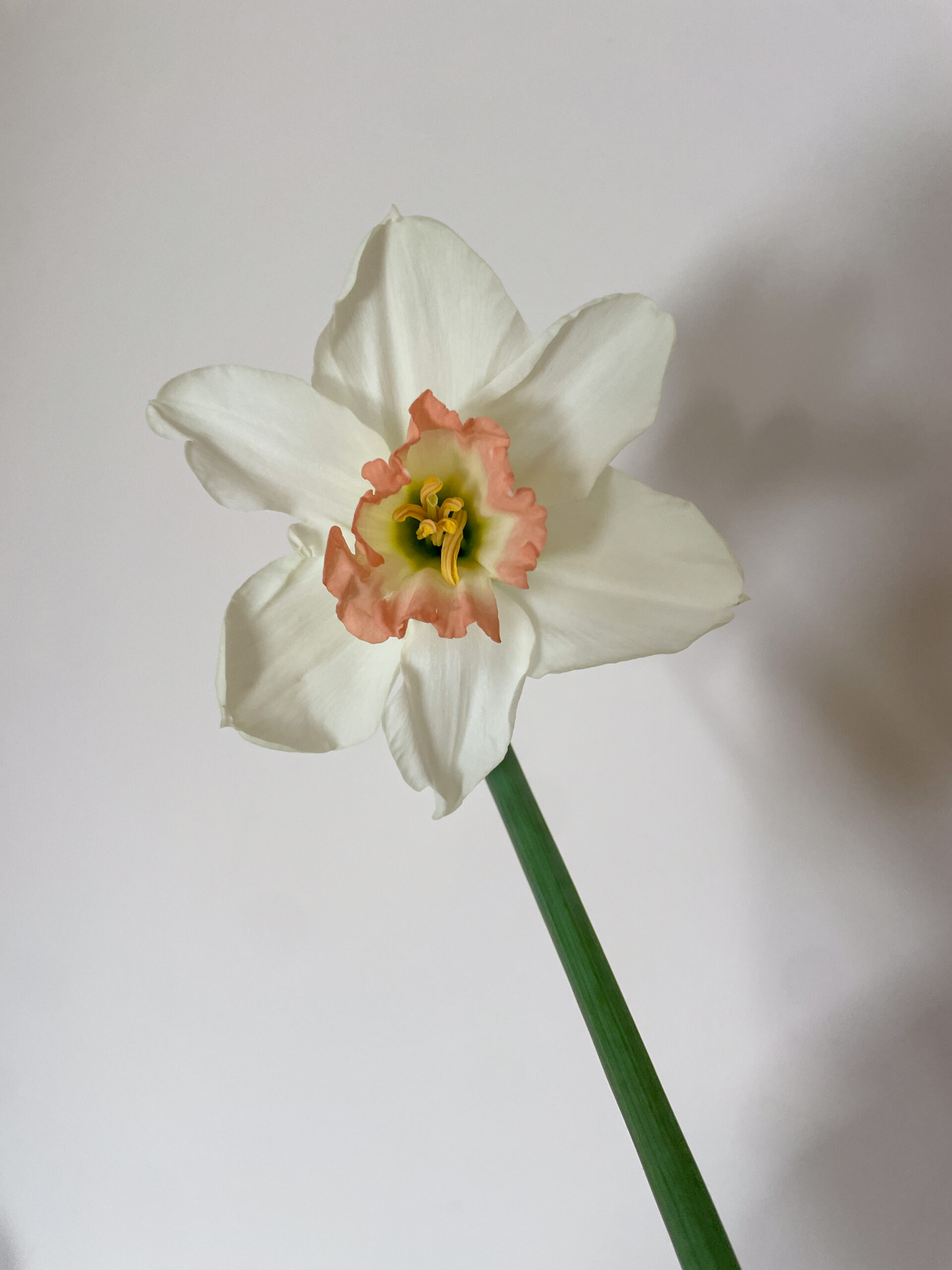 | 25 or 50 stems of Lincolnshire grown Pink Pride daffodils. White petals that shimmer, with a yellow to peach-pink trumpet. These are really special!